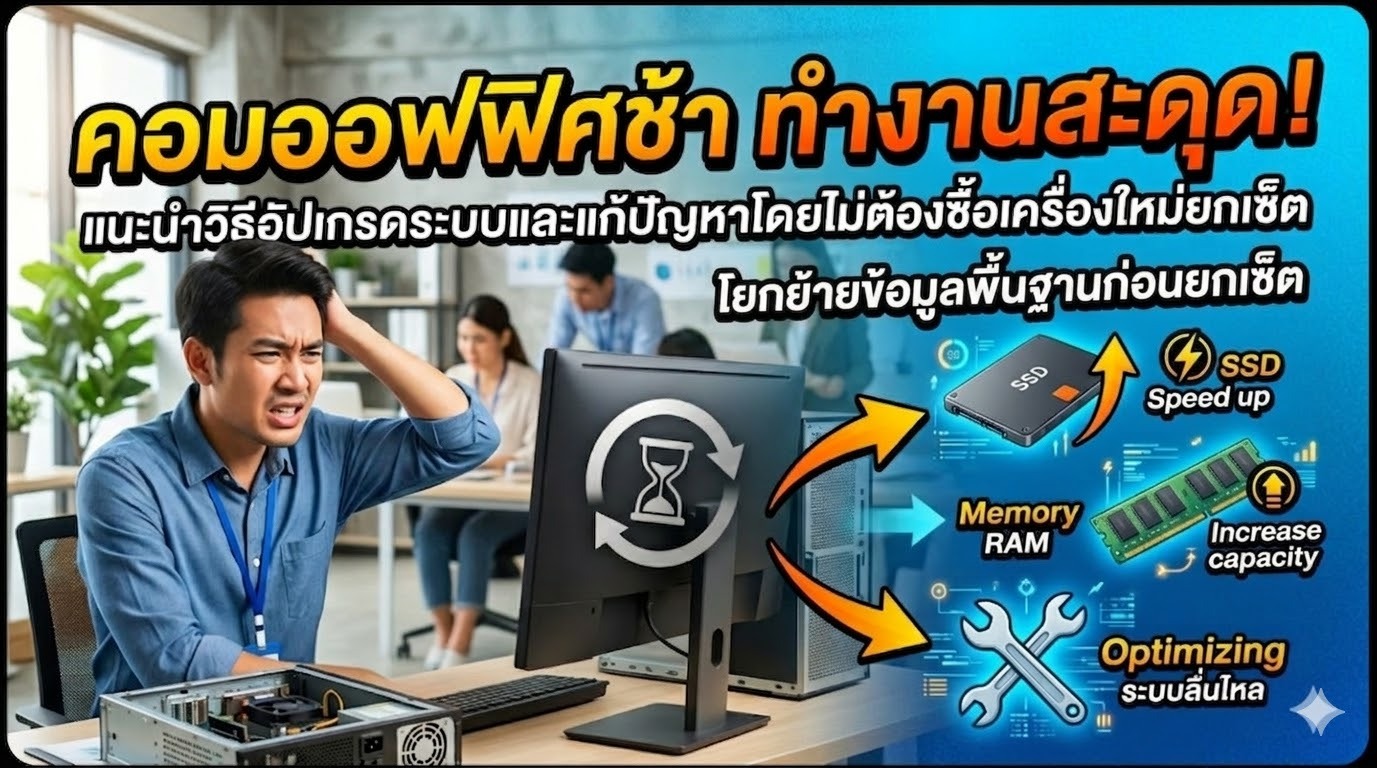 สรุปทิ้งท้าย: การแก้ปัญหาคอมออฟฟิศช้า ไม่ได้มีแค่ทางเลือก “ทนใช้ต่อไป” หรือ “ซื้อใหม่ทั้งหมด” การวิเคราะห์หาสาเหตุและเลือกอัปเกรดให้ตรงจุด ทั้งในระดับฮาร์ดแวร์และระดับโครงสร้างระบบ คือกุญแจสำคัญที่จะช่วยให้องค์กรของคุณก้าวเดินต่อไปได้อย่างราบรื่น โดยที่กระแสเงินสดในกระเป๋ายังคงแข็งแรงครับ