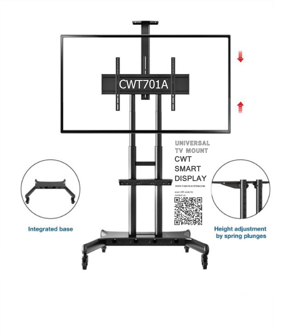 CWT 701A คือขาตั้งทีวีแบบมีล้อเลื่อนที่ตอบโจทย์การใช้งานในห้องประชุม งานนิทรรศการ หรือสถานศึกษาที่ต้องการความคล่องตัว ด้วยโครงสร้างที่ออกแบบมาเพื่อรับน้ำหนักทีวีจอใหญ่โดยเฉพาะ มั่นใจได้ในความปลอดภัยและความมั่นคง พร้อมฟังก์ชันการปรับระดับและชั้นวางอุปกรณ์ที่ครบครัน ช่วยให้การจัดเตรียมชุดนำเสนอหรือ Video Conference เป็นเรื่องง่ายและดูเป็นมืออาชีพ