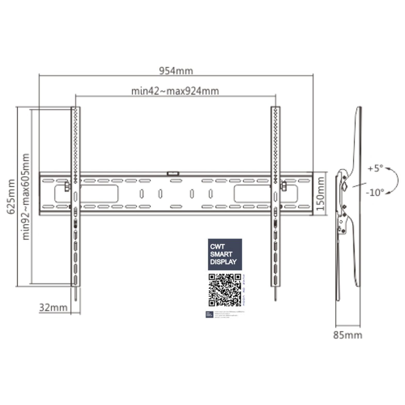 ปรับก้มได้ (Tilt): สามารถปรับมุมก้มได้ (โดยปกติประมาณ 15 องศา) เพื่อลดแสงสะท้อนและให้มุมมองที่ดีที่สุดเมื่อติดตั้งทีวีในระดับสูง